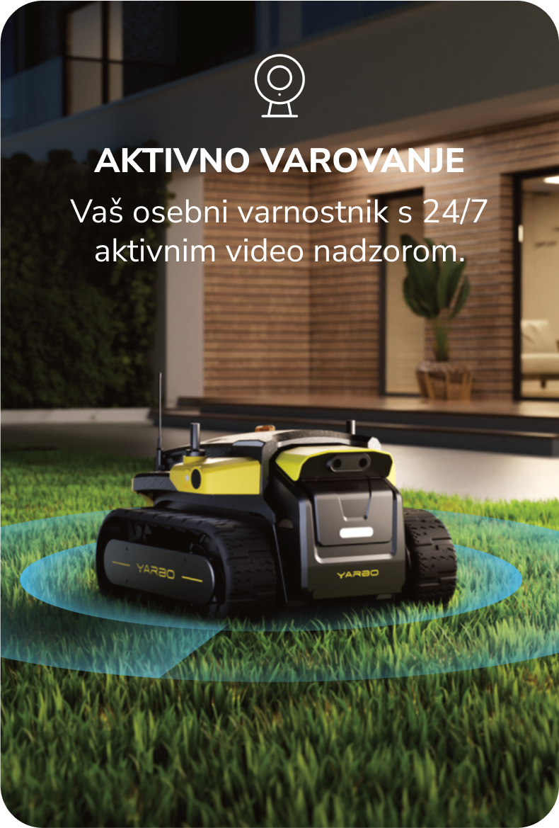 Seveda! Yarbo Core vsebuje pametni priključek, da ne le vleče prikolico in pobira pridelke, ampak je tudi tvoj stražar hiše z "real time" predvajanjem slike na tvojem telefonu preko vseh njegovih kamer. Ko zagleda neznanca ti to sporoči na telefon, njega pa z glasovnim sporočilom prežene iz parcele.